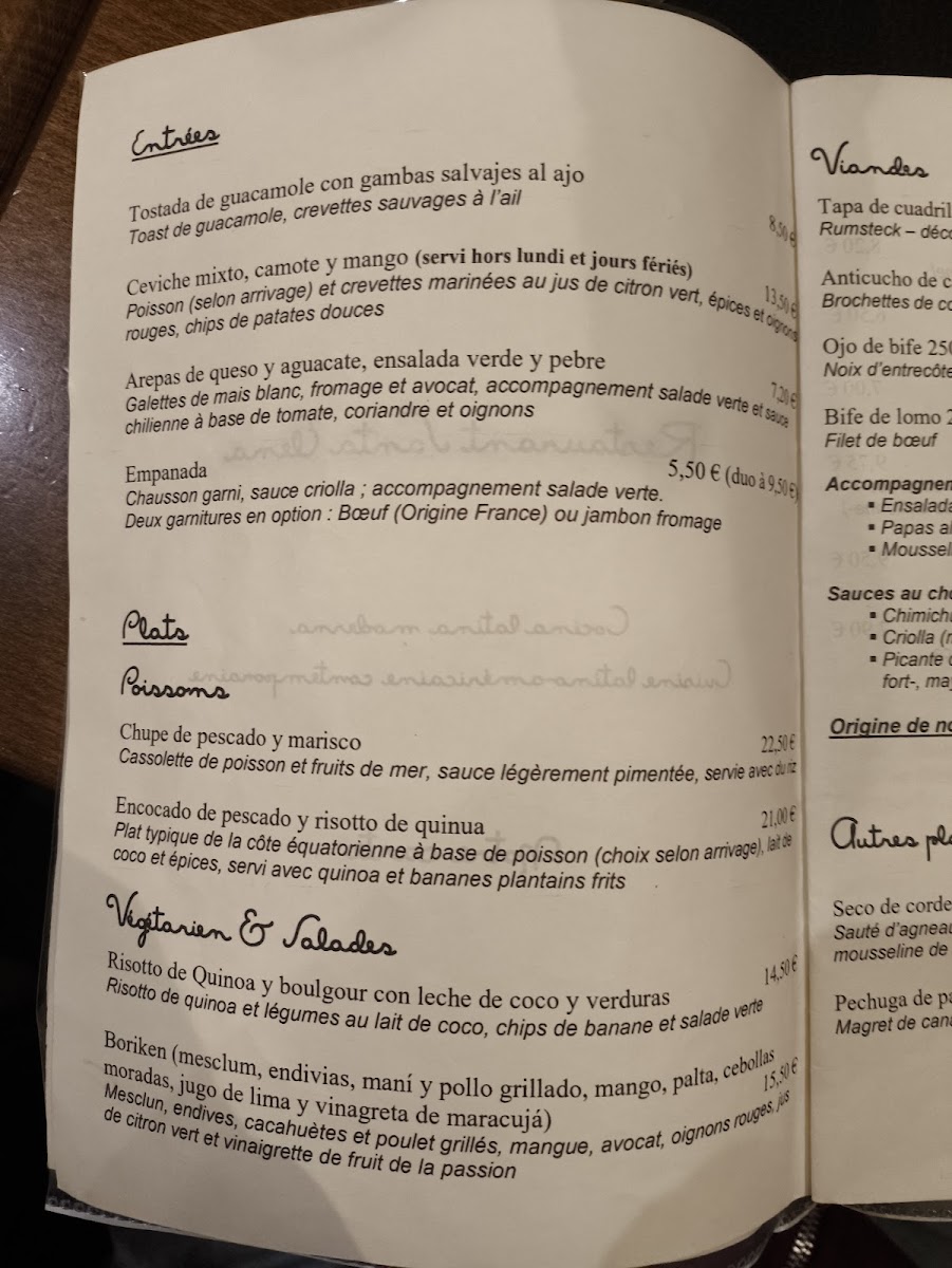 “ Latin American restaurant, located centrally, with Columbian and French influences. Experience was great from the interaction with the staff to the plates. Dishes are well prepared with ingredients of quality and very tasty. Meat originates from south America. Staff was nice and atmosphere too. I will return Thanks and keep up the good work ”